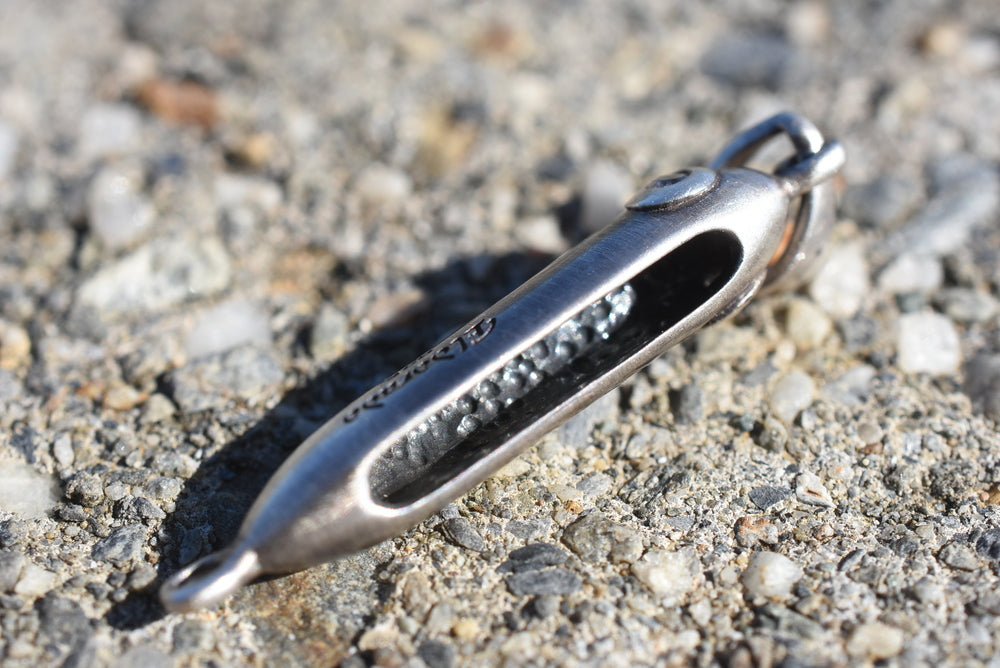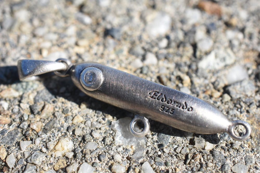 ブラックバス、ナマズ等、主に淡水域のトップウォーターゲームで愛されるペンシルベイトをモチーフにしたシンプルなデザイン。側面(片側)にEldoradoと925の刻印があります。男女問わず着用いただけるサイズ感のネックレスです。