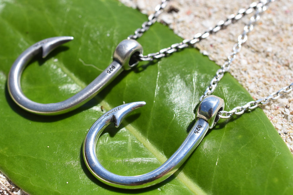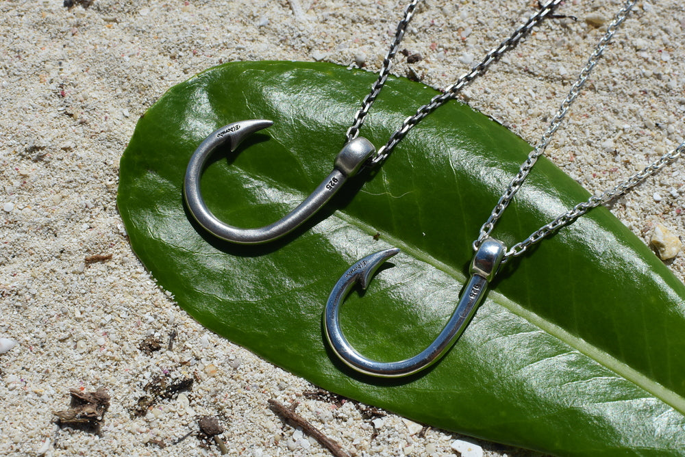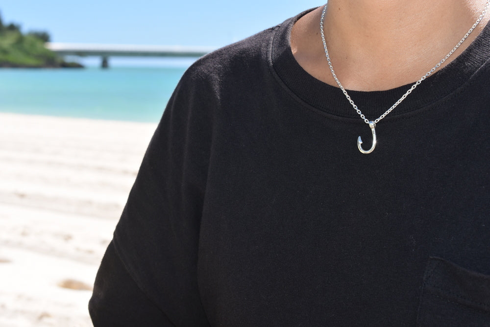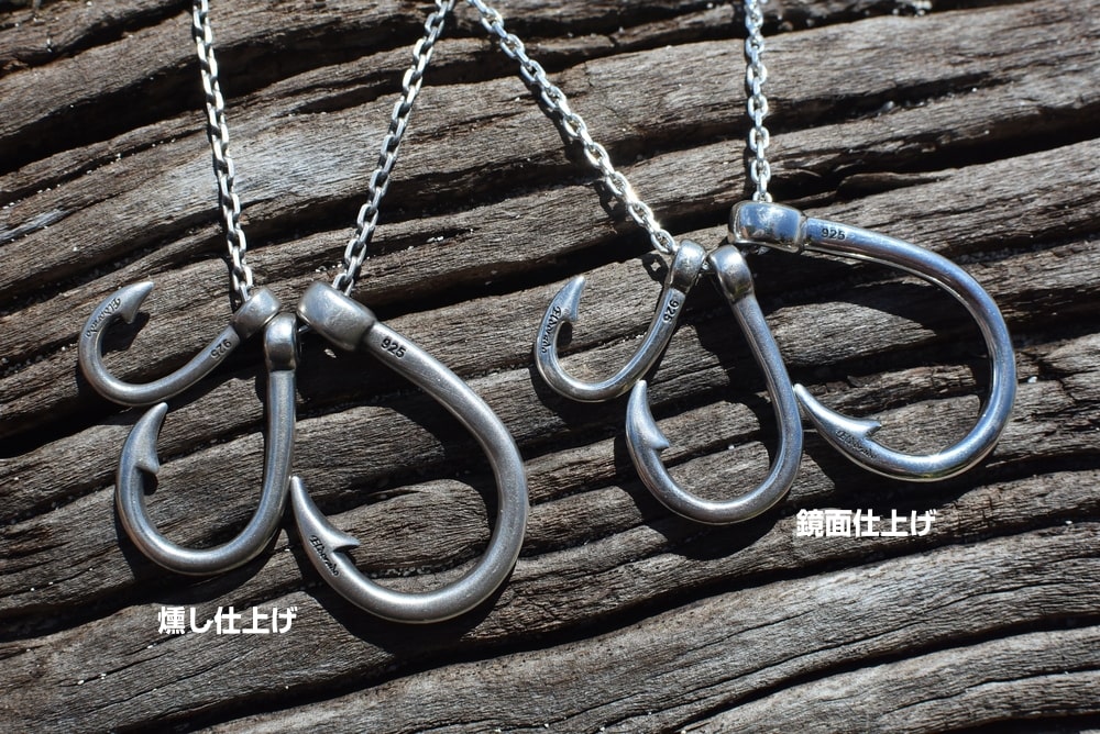 釣り針は釣り人にとってもっとも重要なアイテムの一つ。狙った魚の口に確実にフッキングするために、釣り針選びに拘っている方も多いのではないでしょうか。エルドラドの釣り針ネックレスは余分なデザインを施すことなく、釣り針を忠実に再現しております。※針先は危険ですので丸めています。